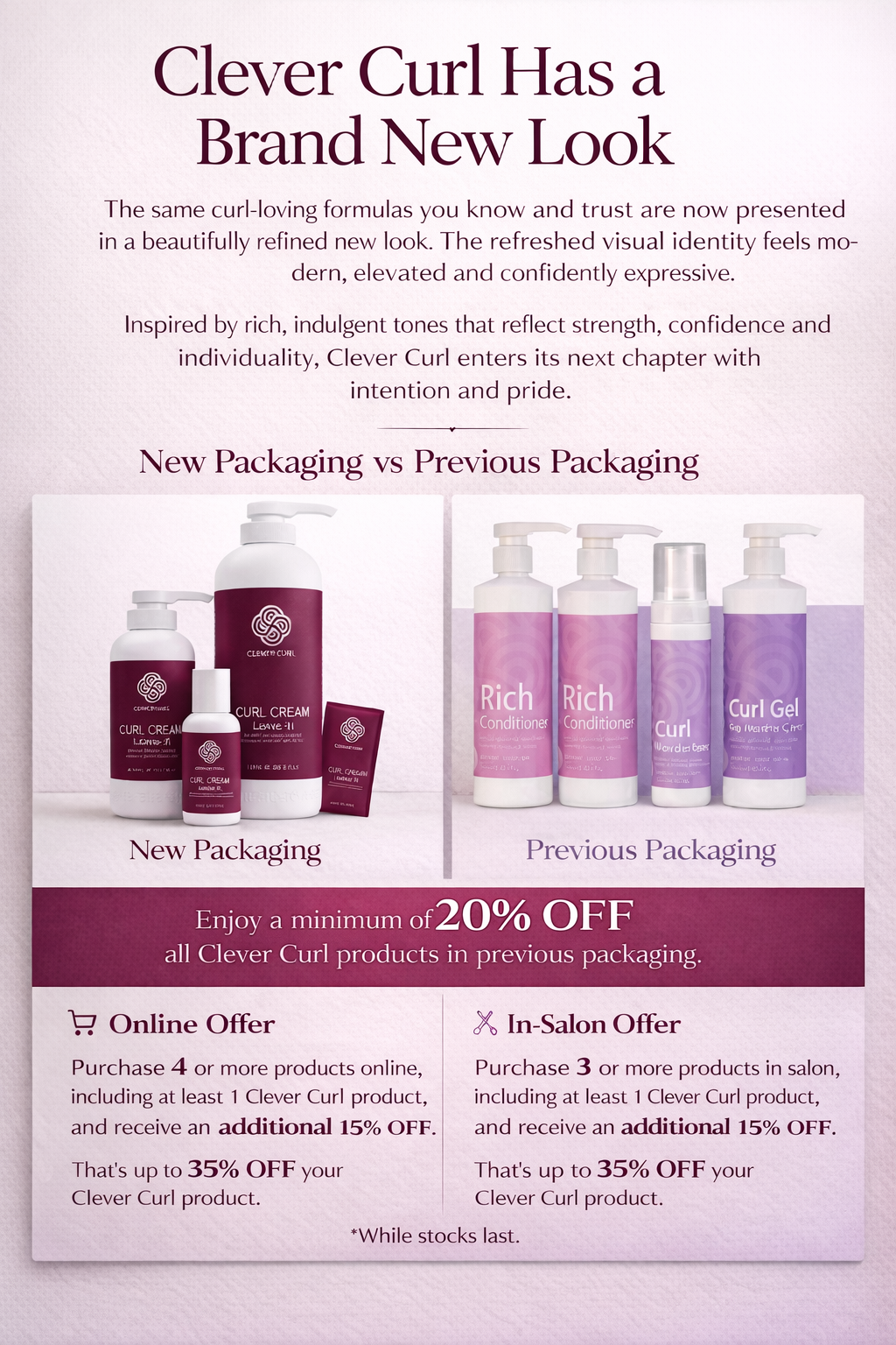 ✂️ In Salon: Buy 3+ products (with at least 1 Clever Curl) and get an extra 15% off